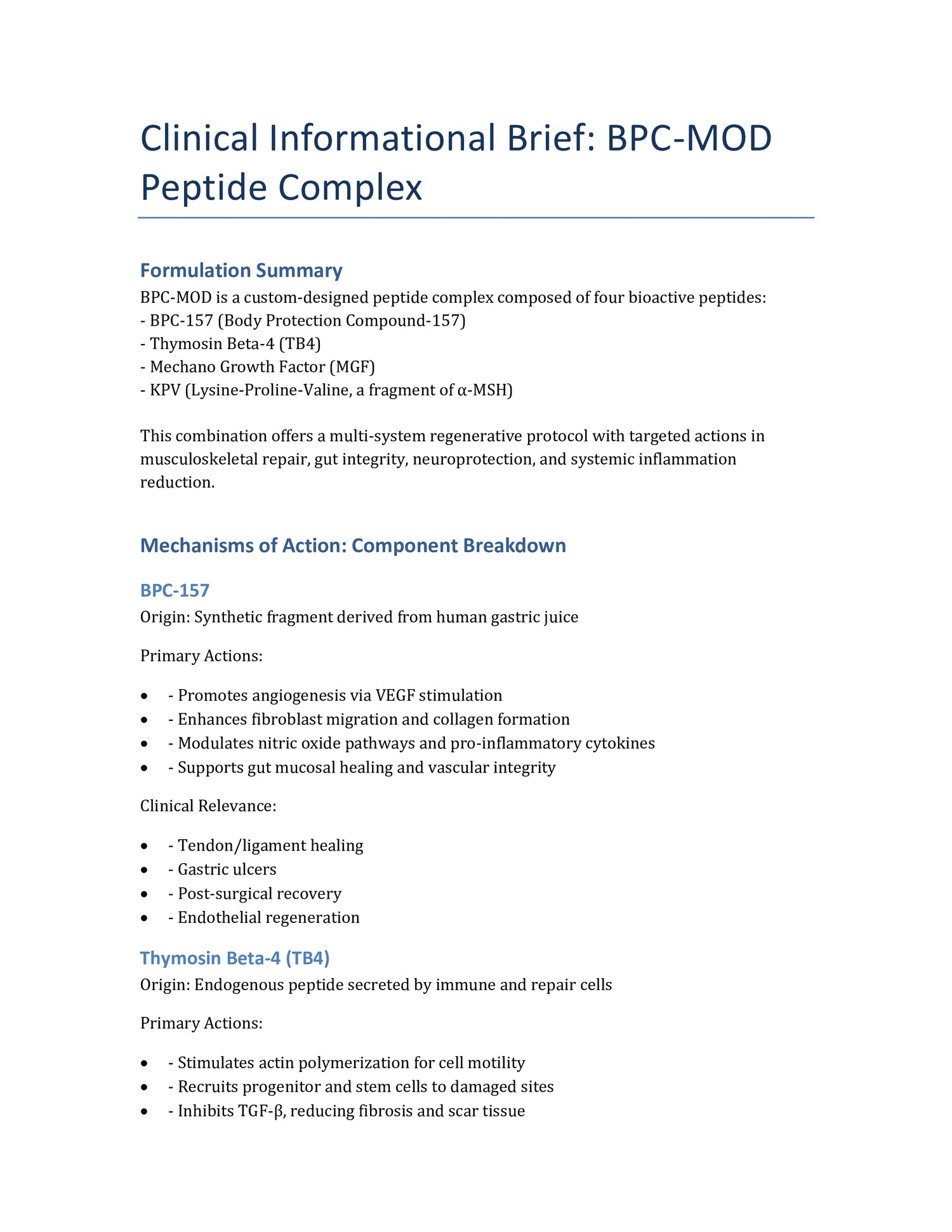 Clinical Informational Brief: BPC-MOD Peptide Complex