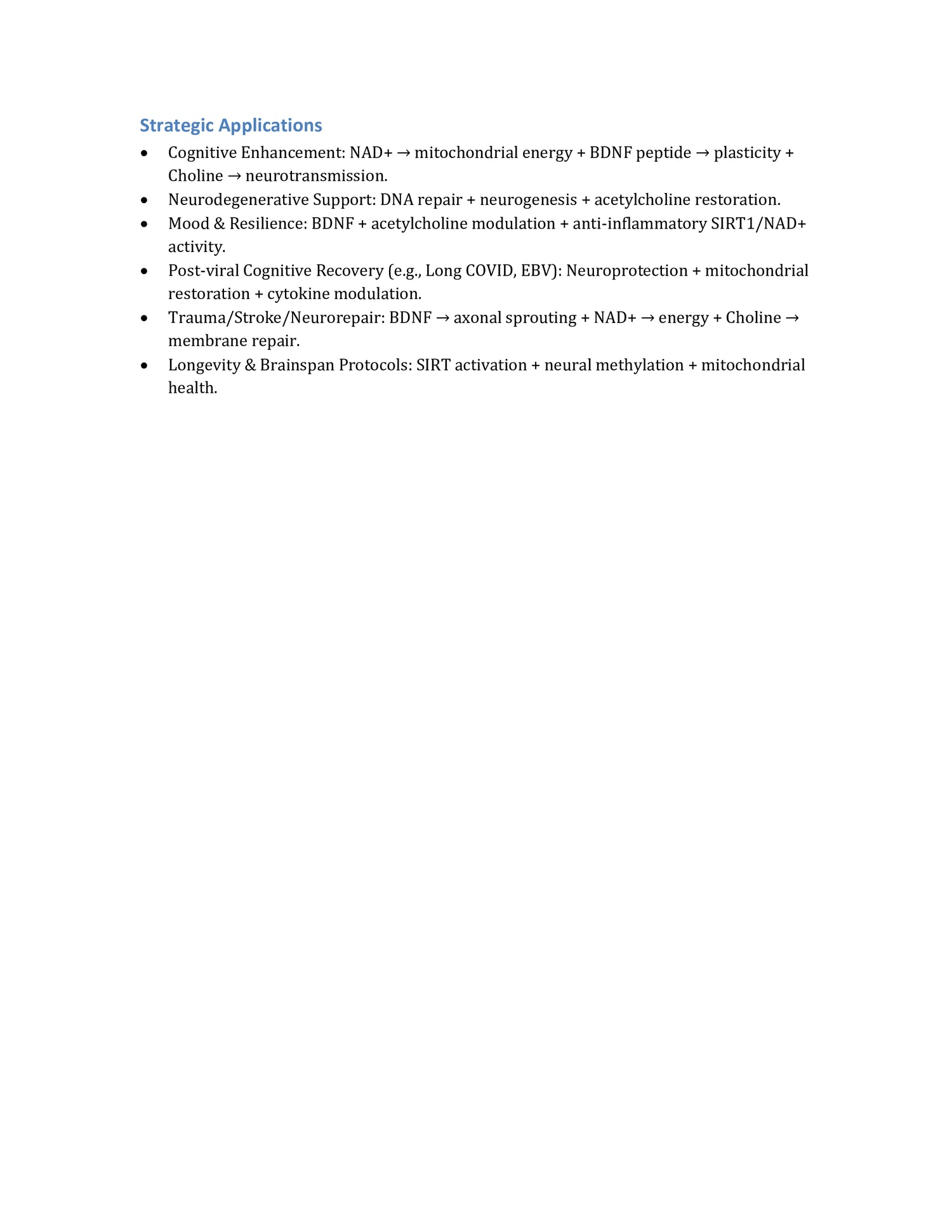 Mechanism of Action and Synergy of NAD+, BDNF Peptide, and Choline in